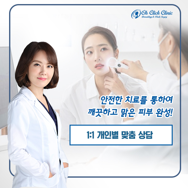 다양한 피부 고민에 맞는 1:1 개인별 맞춤 상담으로 깨끗한 피부를 만나 보실 수 있습니다. 보다 믿을 수 있는 안전한 치료를 통하여 깨끗하고 맑은 피부 완성해 보시길 바랍니다.