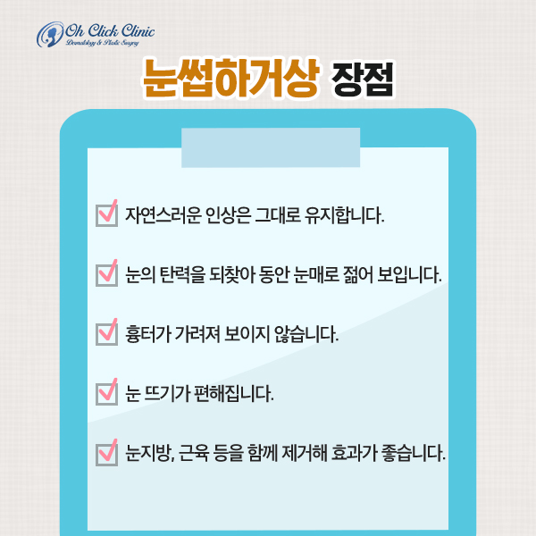 이러한 문제점을 해결하기 위해 눈썹하거상술을 선택하십니다.